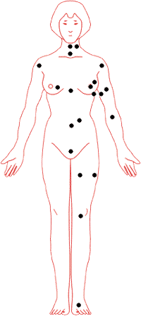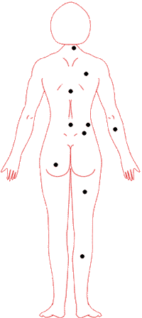 请根据您身体上痣的大致位置对照下图,将鼠标放在黑点上面,中间即可显示结果.